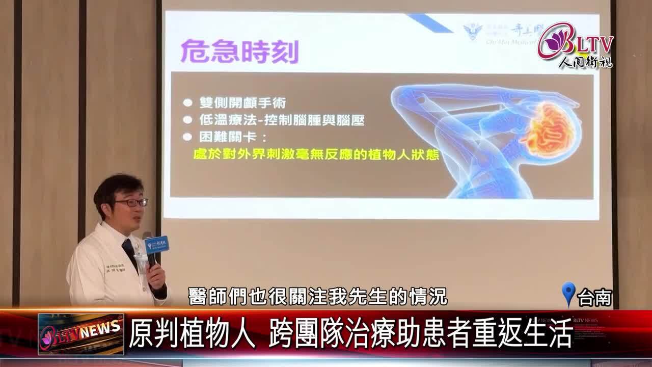 在台南有一名42歲男性,因高空作業不慎墜落,造成多處顱內出血,一度進入植物人狀態,在多次手術、長達9個月跨團隊治療下,已經能自行進食、短距離行走,甚至簡單對話,點亮家屬一線曙光。 #植物人 #腦傷患者 #復健 #磁刺激 #復原 #王義仲