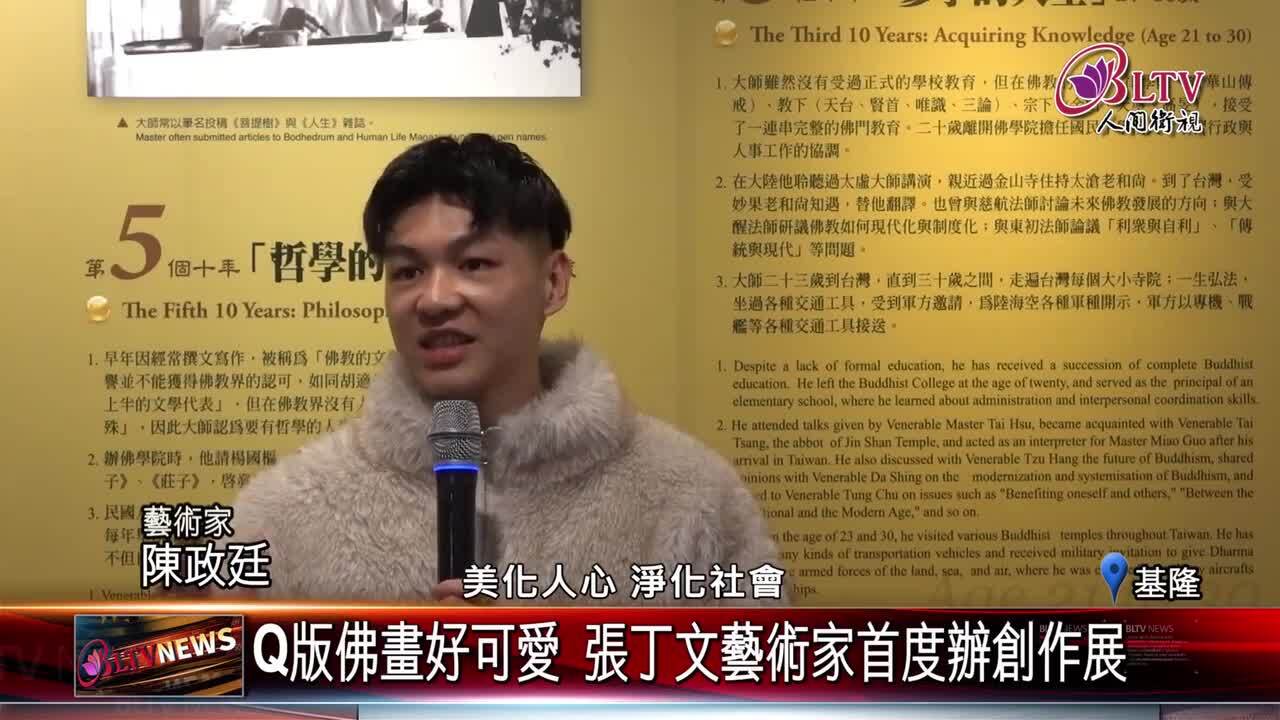 佛光山極樂寺宗門館新春特展,邀請藝術家張丁文,首次舉辦個人創作展,以Q版佛畫藝術創作為主題,展出60餘件作品,而他也說,希望將當下生起的善念,化為祝福,讓大眾能感受畫中的安定與溫暖。 #基隆 #佛光山極樂寺 #藝術 #張丁文 #佛畫